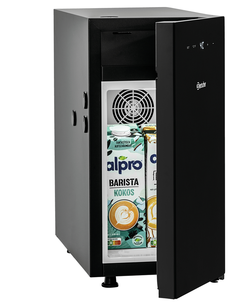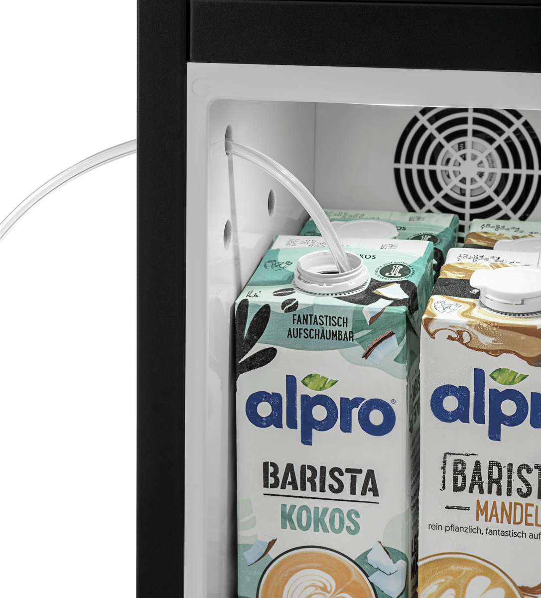 Ob für Cappuccino, Café au lait oder Latte Macchiato – Der praktische Milchkühlschrank bietet mit seinen seitlichen Schlauchöffnungen direkten Zugriff auf gekühlte Milch. Die Milch wird hygienisch kühl gelagert und kann bei Bedarf über den Milchschlauch des Vollautomaten direkt für die Kaffeezubereitung gezogen werden.